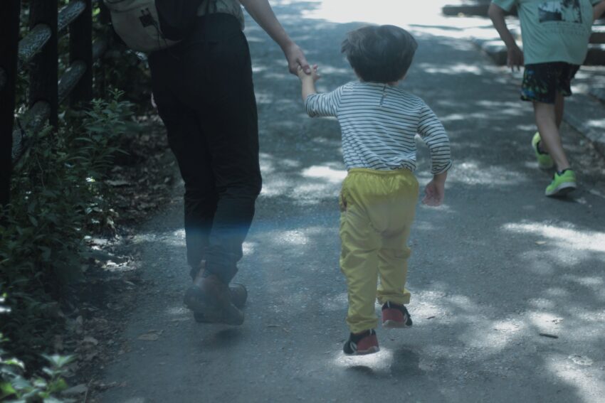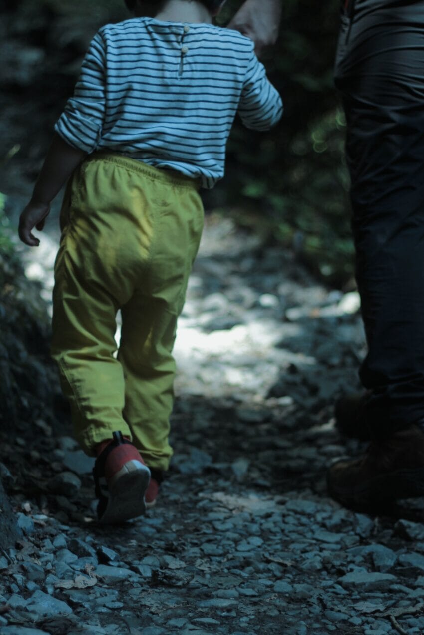 お昼寝のおかげで元気を取り戻した子どもは、自分の足でしっかり歩き切りました。