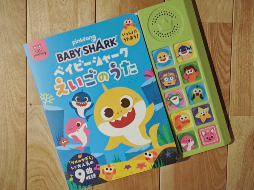 「ベイビーシャーク」の音の出る絵本で、英語に触れる。