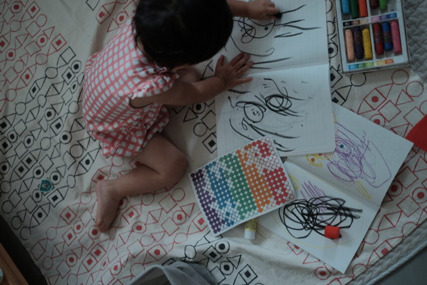 うちの子は元々絵を描くことが好きなようでしたが、2歳になって、おもちゃよりも手を使った工作系の方に集中することが多くなりました。