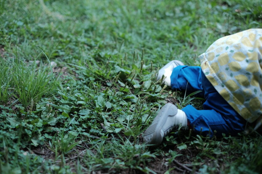 ということで公園へ。様子を見ていると、特にハイハイしやすそうなのがいいなと思いました。靴自体は結構柔らかいけど、足はちゃんと保護してくれる感じ。歩く前から履かせてもよさそうです。特にこれからの時期は地面も熱くなっていたりするので、履いた方が安心できます。