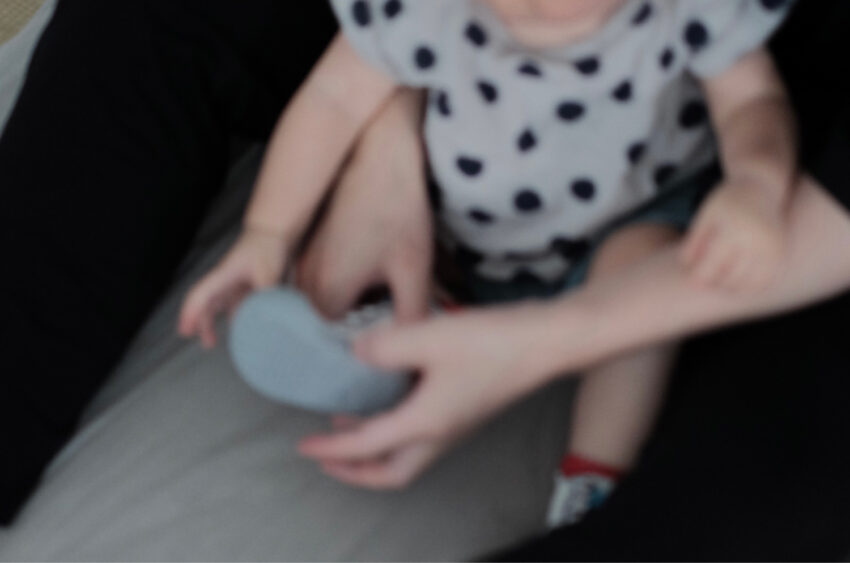 週末にパパが履かせてくれました。靴下に似ているからか、初めてでも嫌がらずに履いてくれました。よかった!