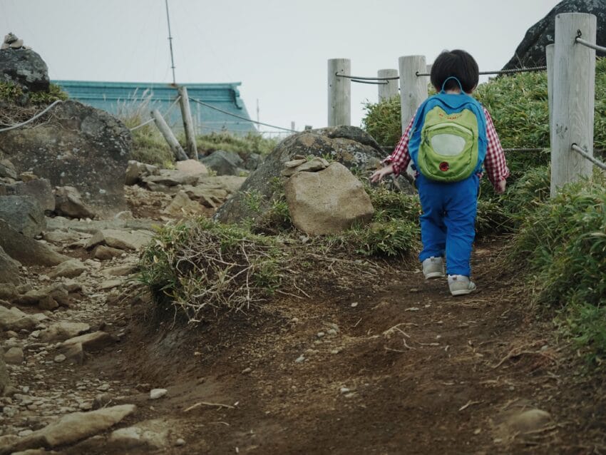 今回は2歳4ヶ月で登山。本人の足で歩いたり、子どもの様子を見ながら抱っこやおんぶ(我が家は安全性を高めるためベビーキャリーを持っていきます)をしたり、手を繋いで歩いたりと、登山をするときはいつも臨機応変に対応しています。