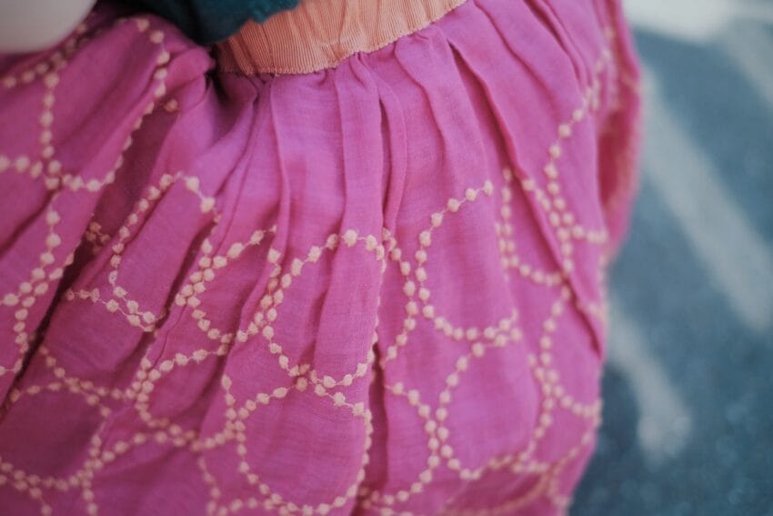 なんとミナペルホネンの子ども服を上下で購入することができました。しかも大好きな「choucho」と「tambourine」の柄という組み合わせで…!!
