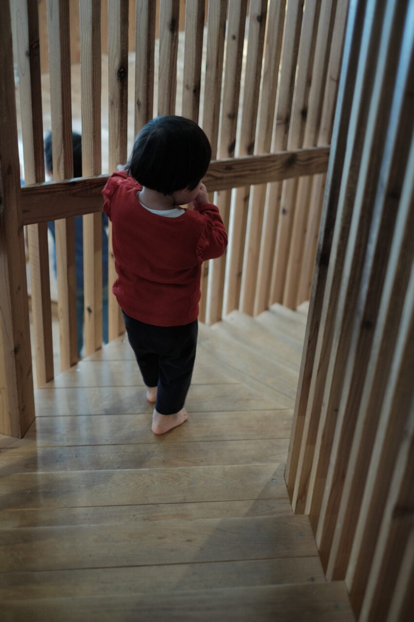 他にもいろんなお部屋があり、次に行ったのは「おもちゃのもり」。この階段の遊具が気に入ったようで、ずっと遊んでいました。