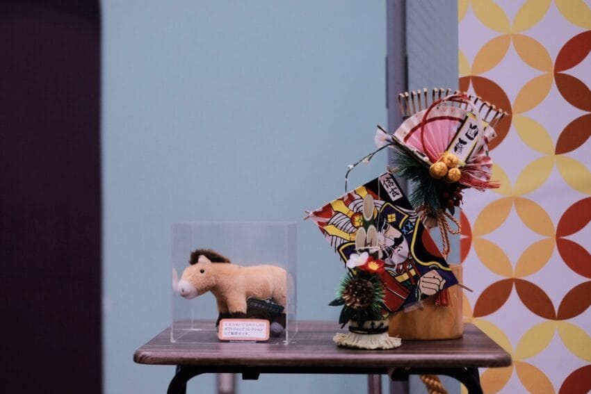 代わりに、入口近くの無料休憩所に馬のぬいぐるみが飾られていて、記念にパシャリ。