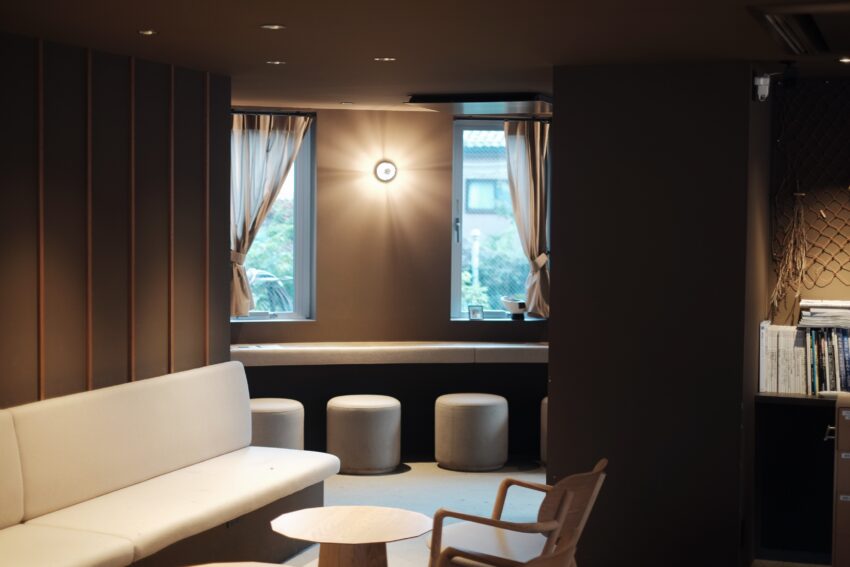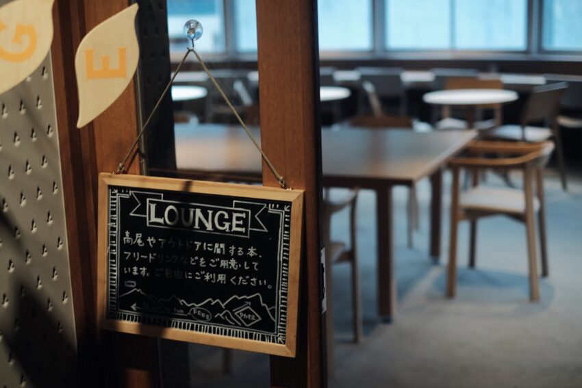 ドリンクが無料のラウンジ。本を読んだり、作業をしたり。