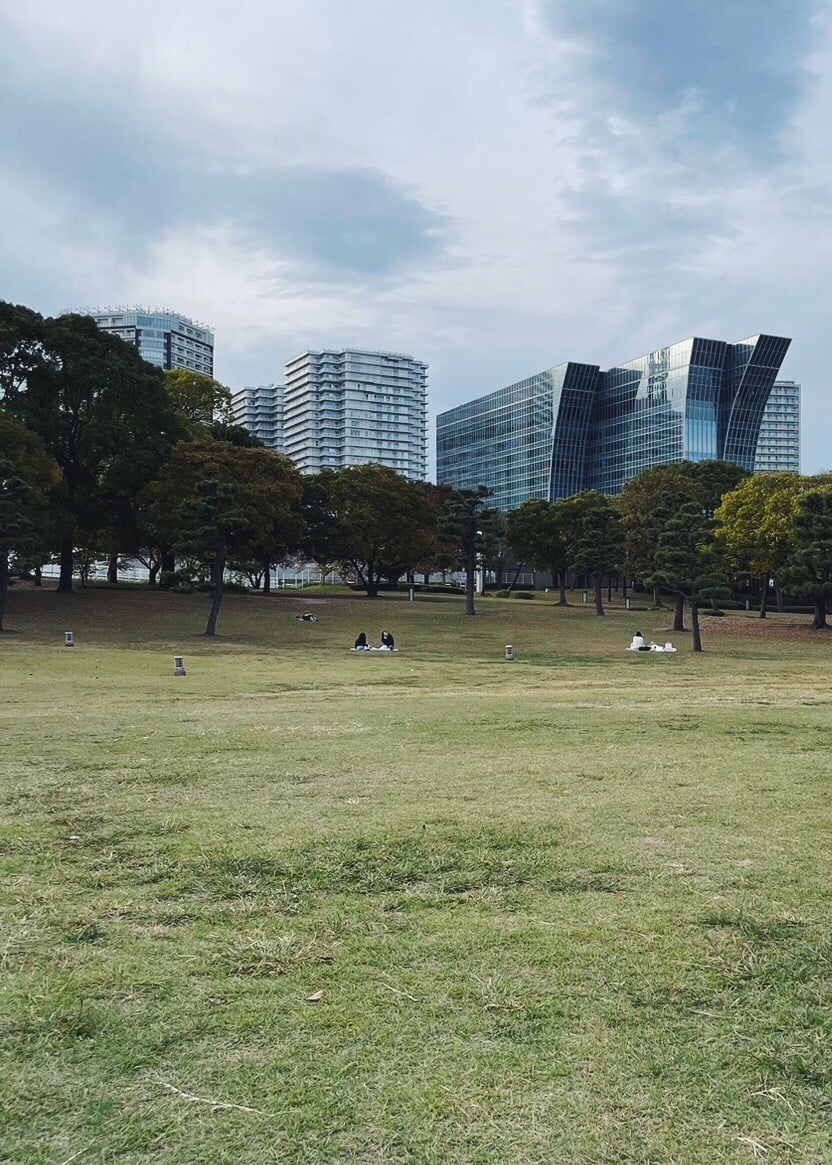 お昼寝から目覚めた後は、アンパンマンミュージアムに戻り1階でオムツ替えをした後、真っ直ぐ歩いて10分ほどの距離にある「臨港パーク」で帰りの時間まで遊びました。みなとみらい地区最大の緑地だそうで、海を望める、横浜らしい景色の公園でした。