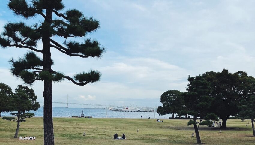 近くの海が見える公園「臨港パーク」で遊ぶ。